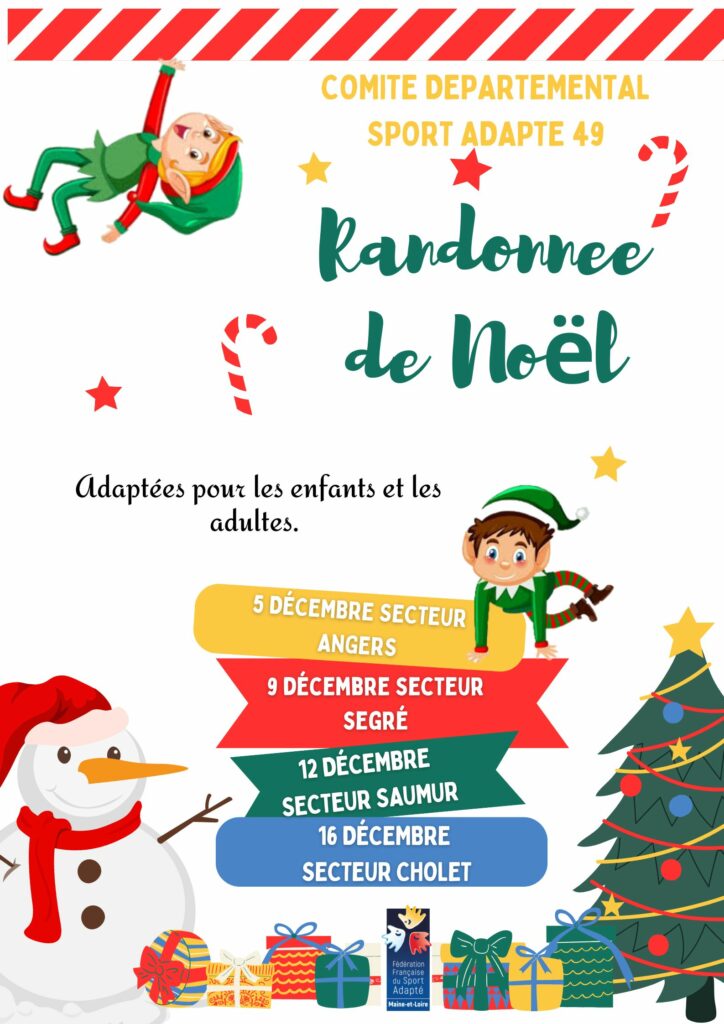 Le Comité Départemental de Sport Adapté 49 vous propose une Randonnée de Noël à destination des jeunes et/ou adultes de votre établissement.