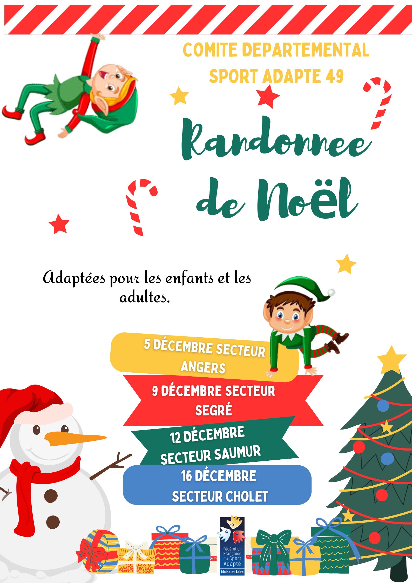Le Comité Départemental de Sport Adapté 49 vous propose une Randonnée de Noël à destination des jeunes et/ou adultes de votre établissement.